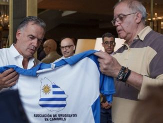 Yamandú Orsi celebra encuentro con uruguayos en Cambrils y recibe camiseta: «Me la llevo puesta en el alma»