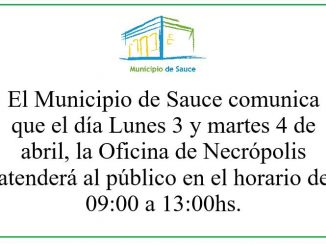 El Municipio de Sauce comunicó que el próximo lunes 3 y martes 4 de abril, la Oficina de Necrópolis atenderá al público en el horario […]