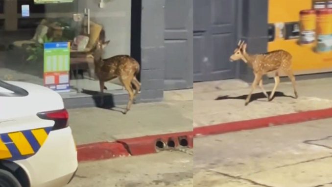 Un ejemplar de ciervo axis de tamaño medio generó revuelo al ser avistado corriendo por las calles de San José de Mayo durante la tarde del pasado lunes. La inusual presencia del animal motivó a varios ciudadanos a alertar a las autoridades policiales. Efectivos de la unidad comunitaria acudieron al lugar y, guiados por la indicación de residentes, lograron localizar al cérvido dentro de un predio privado ubicado en la Avenida Luis Alberto de Herrera. El animal mostraba signos evidentes de estrés. Ante esta situación, se requirió la asistencia de la Brigada de Seguridad Rural y del Instituto Nacional de Bienestar Animal (INBA). Tras su llegada, los equipos especializados procedieron a su captura mediante una red, para luego sedarlo y, finalmente, trasladarlo al Parque Rodó de la misma ciudad.