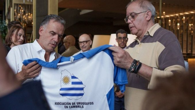 Yamandú Orsi celebra encuentro con uruguayos en Cambrils y recibe camiseta: «Me la llevo puesta en el alma»
