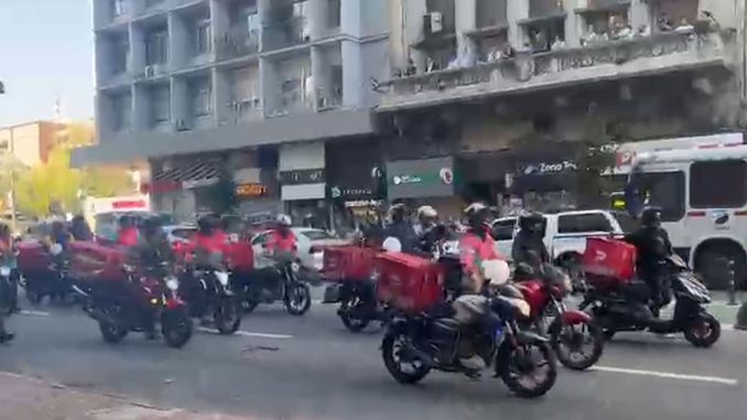 Este sábado 25 de abril de 2026, al mediodía, repartidores en motocicleta llevaron a cabo una movilización a lo largo de la avenida 18 de Julio en Montevideo. La protesta se desencadenó tras el fatal homicidio de uno de sus compañeros, ocurrido la noche del viernes en Carrasco Norte.